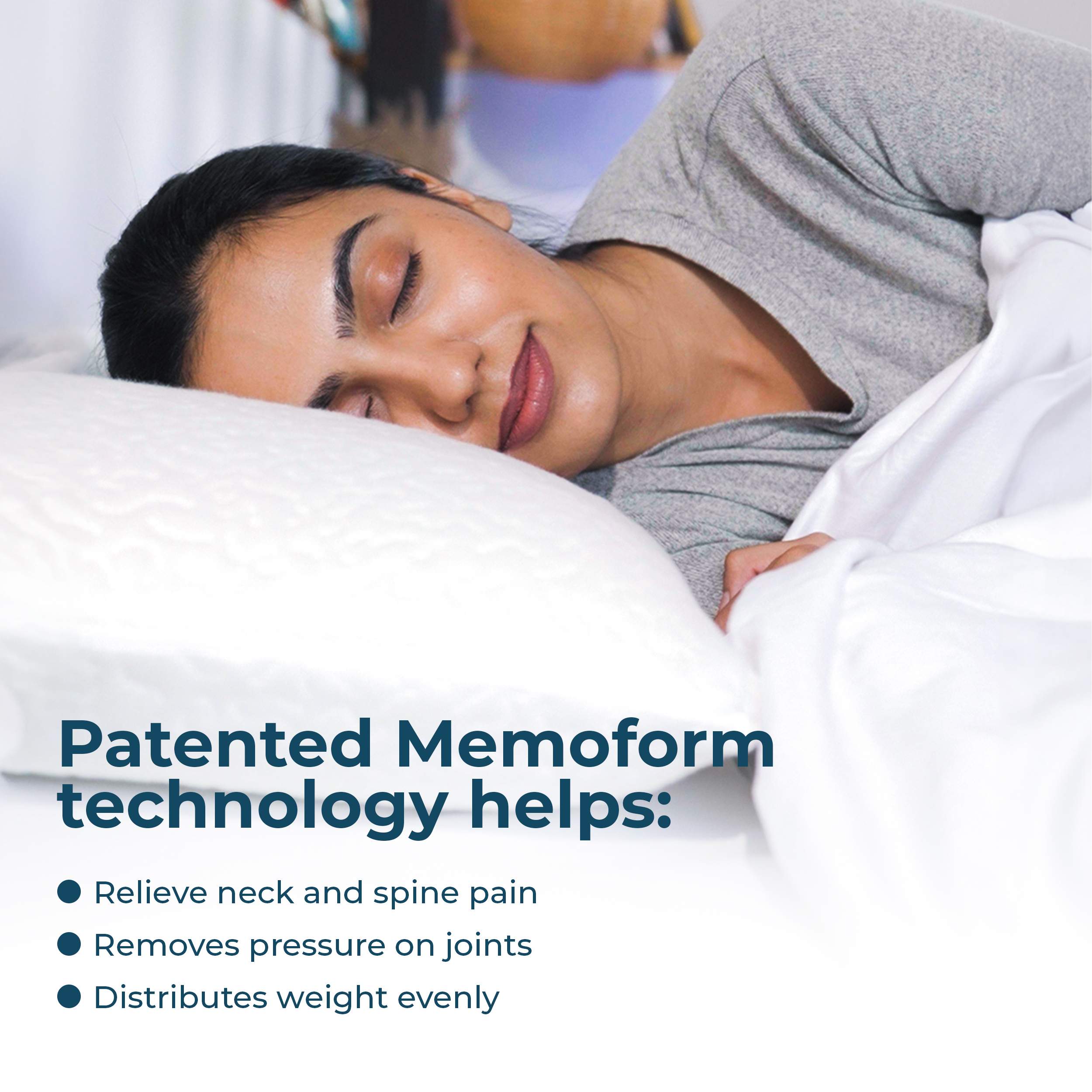 Orthopedic support and comfort, Anti-bacterial and anti- dustmite, Patented memoform, Cozy breathable, Hypoallergenic fibre, Washable and removable cover with zippers
